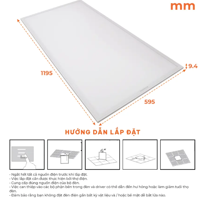 60W/220V *Màu ánh sáng : Trắng 6500K *Kích thước sản phẩm (mm) : 1195x595x9.4