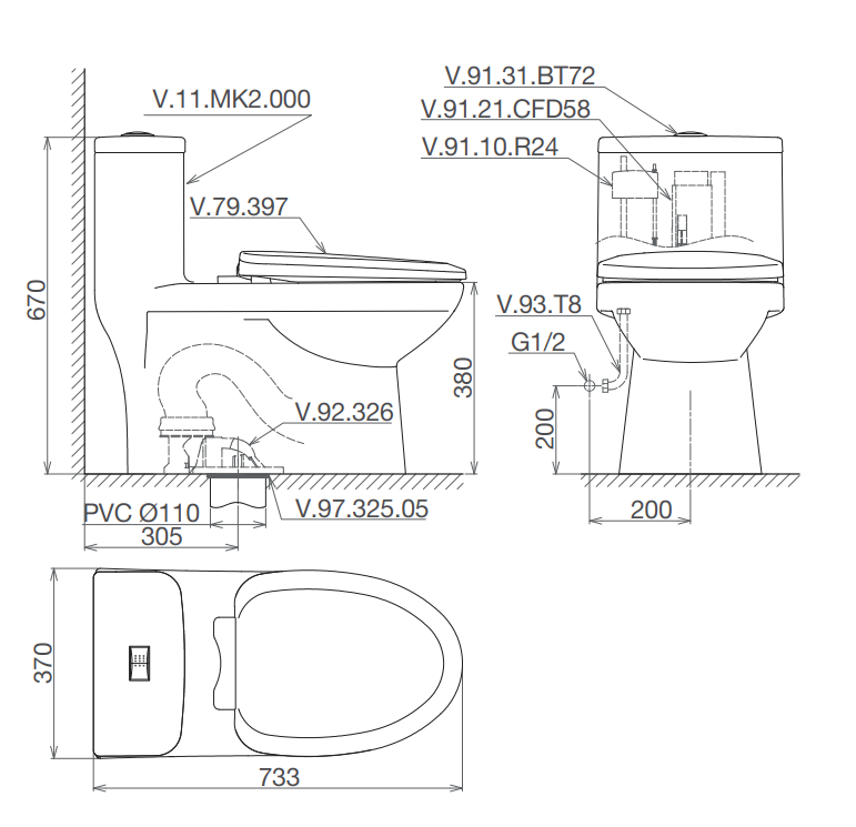 Bàn cầu 1 khối Nano Titan, xả nhấn 2 ché độ, nắp êm MK2 + VG826