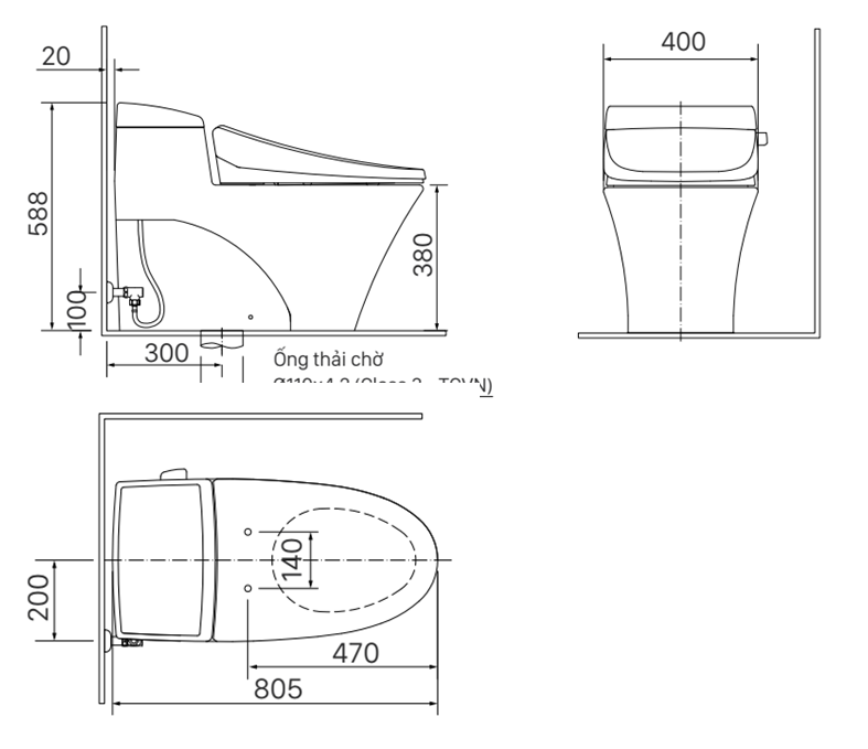 Bàn cầu 2 khối, đã bao gồm nắp đóng êm