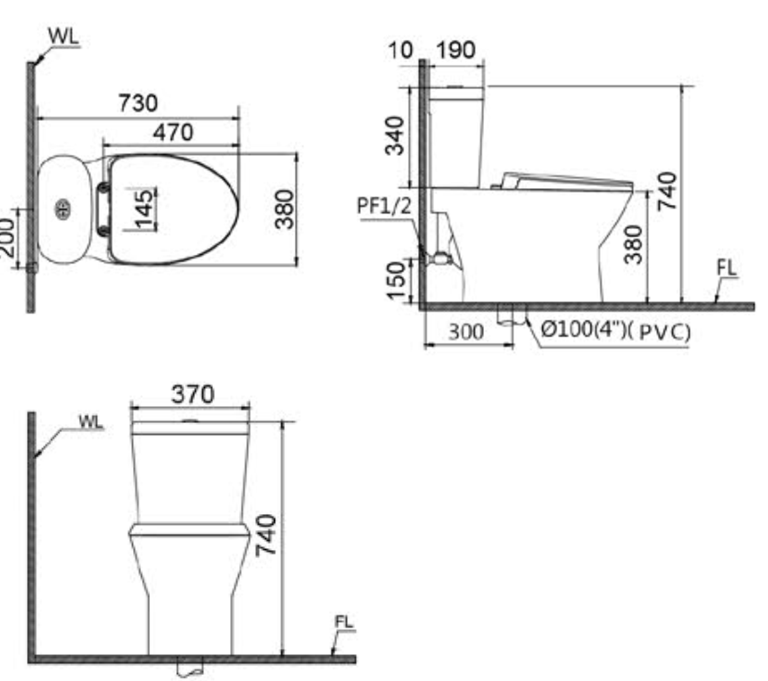 Bàn cầu 2 khối ( không nắp ) + Nắp rửa điện tử TAF200H