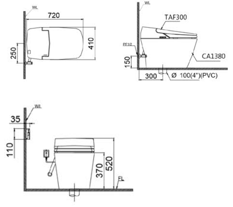 Bàn cầu điện tử, Nguồn điện: 220 V