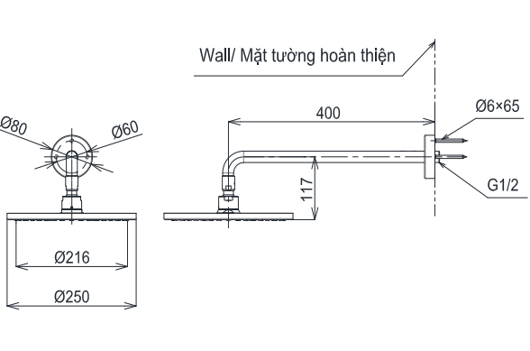 Bát sen gắn tường dòng G dáng tròn 1 chế độ, mặt kim loại , Đường kính: 250mm