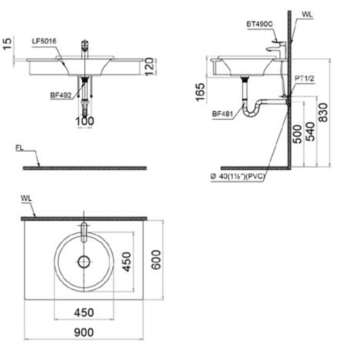 Chậu Lavabo Đặt dương vành ( bao gồm trụ xả nắp sứ ) - LF5016