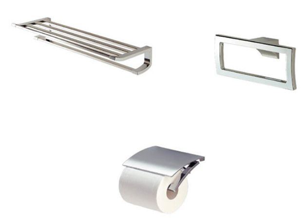 Bộ 3 sản phẩm G (vuông): lô đựng giấy vệ sinh, vòng treo khăn& thanh vắt khăn 2 tầng (kích thước:638mm)