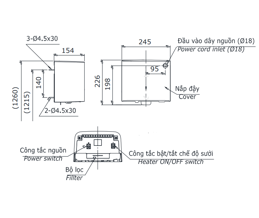 Máy sấy tay tốc độ cao (220V) , Chất liệu: nhựa PP