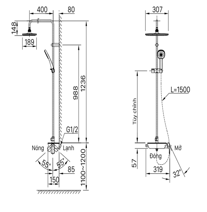 Bộ kết hợp sen âm tường dáng tròn, 3 đường nước