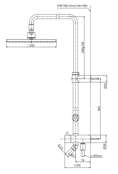 Sen cây dòng G, dáng bát sen vuông 1 chế độ, mặt kim loại , Kích thước bát sen: 250mm