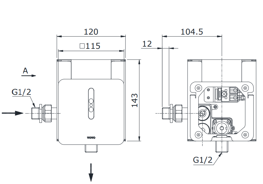 Van cảm ứng tiểu nam âm tường (dùng pin) , Lượng nước xả: 3.0L