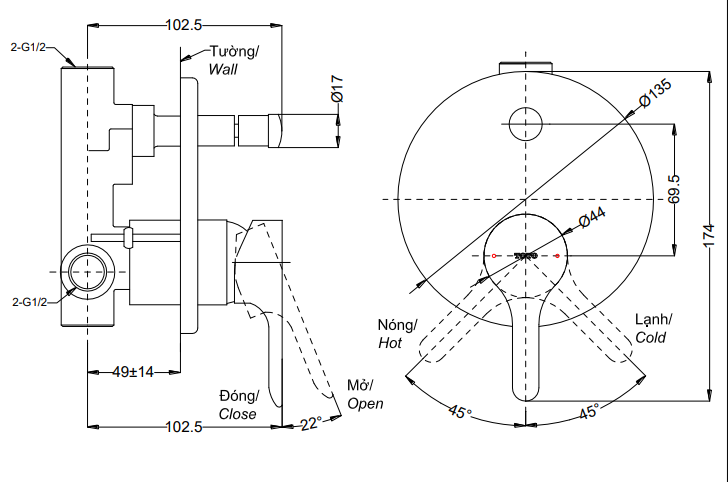 Van gật gù điều chỉnh nóng lạnh GA kèm phụ kiện âm tường
