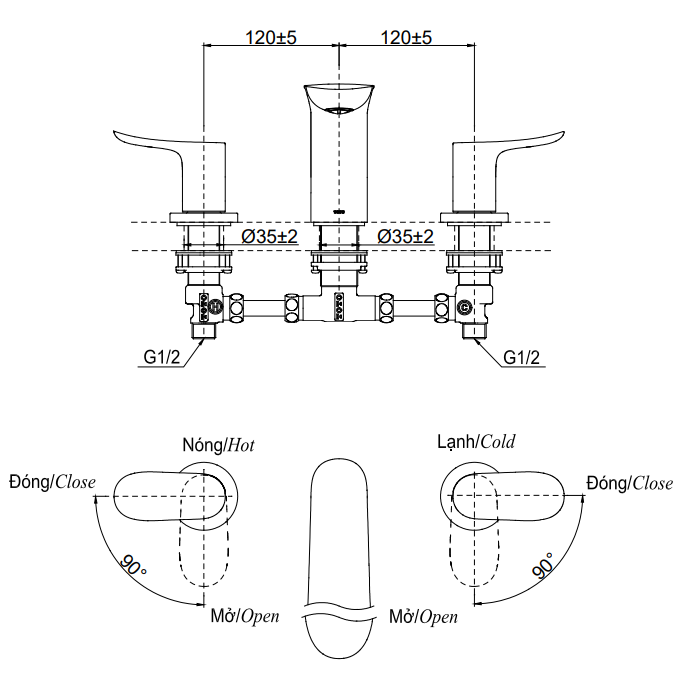 Vòi xả bồn nóng lạnh GO (3 lỗ) , Mã cũ: TBG01201B