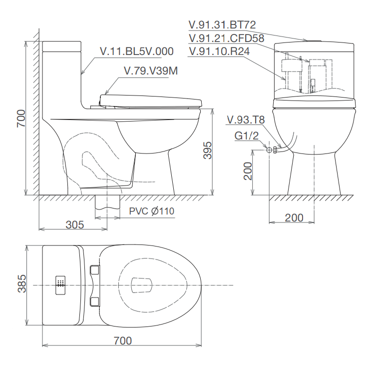 Bàn cầu 1 khối Nano Titan, xả nhấn 2 ché độ, nắp êm BL5 + VG826
