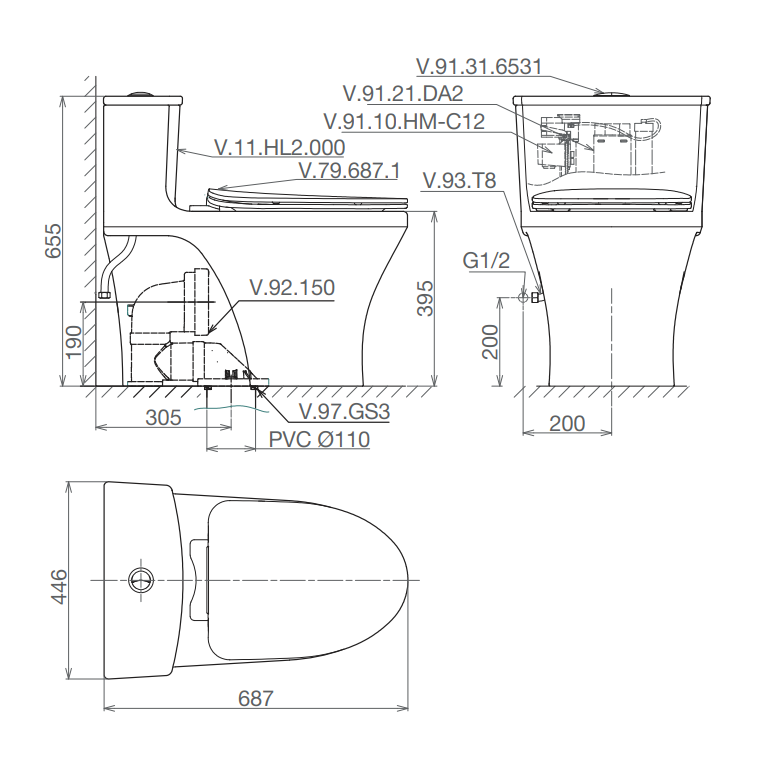 Bàn cầu 1 khối Nano Titan, xả nhấn 2 ché độ, nắp êm HL2 + VG826 + VG853