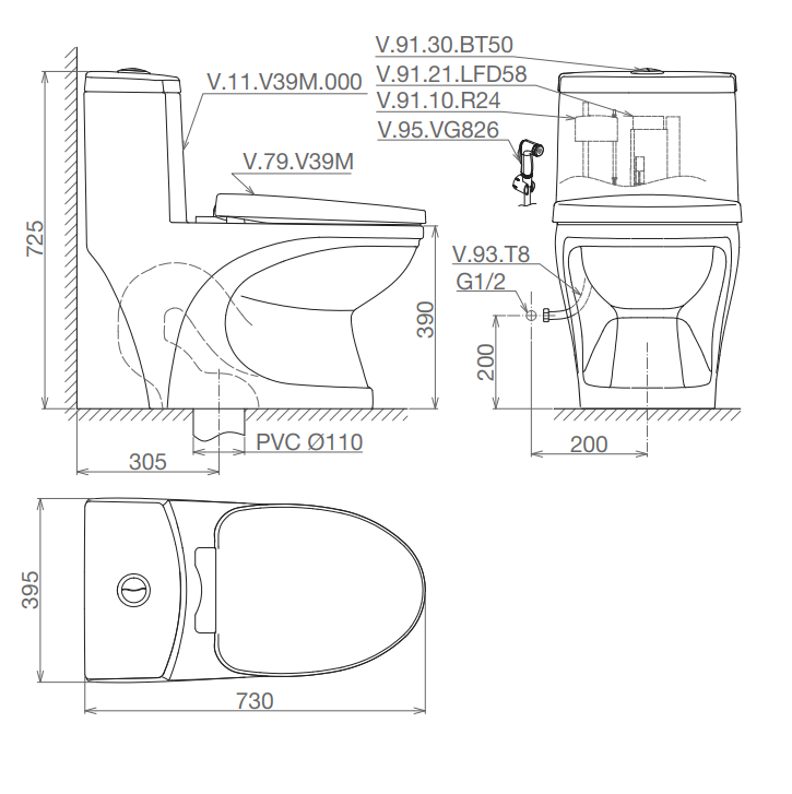 Bàn cầu 1 khối Nano Titan, xả nhấn 2 ché độ, nắp êm V39 + VG826