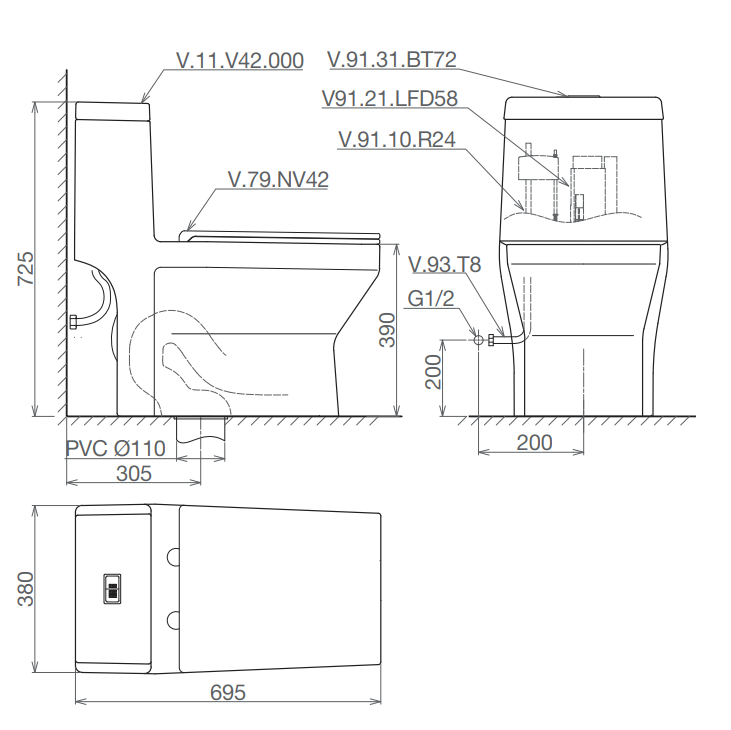 Bàn cầu 1 khối Nano Titan, xả nhấn 2 ché độ, nắp êm V42 + VG826