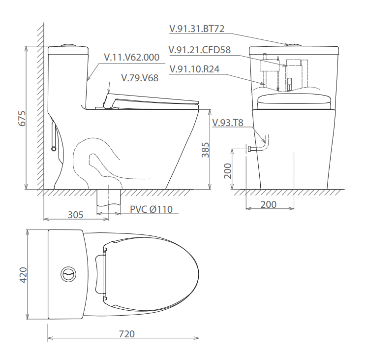 Bàn cầu 1 khối Nano Titan, xả nhấn 2 ché độ, nắp êm V62 + VG826 + VG853