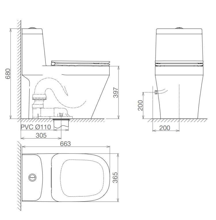 Bát sen gắn tường đa chế độ , Đường kính: 104mm