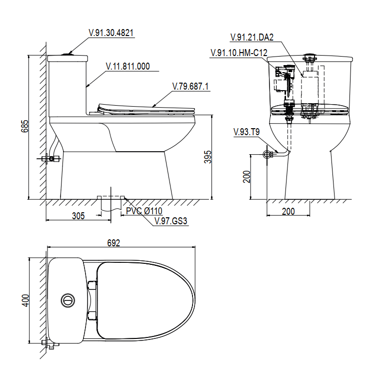 Bàn cầu 1 khối Nano Titan, xả nhấn 2 ché độ, nắp êm V811 + VG826
