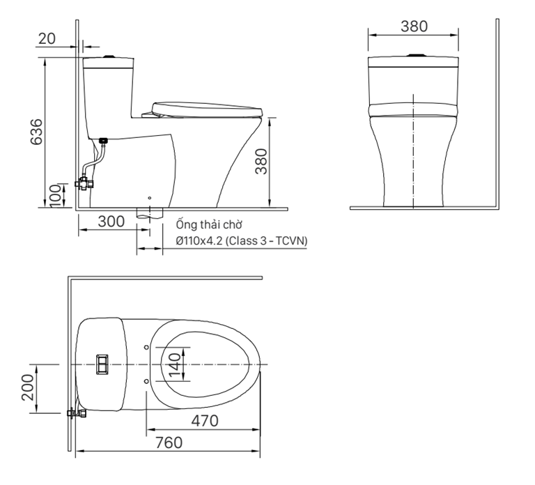 Bàn cầu 1 khối nắp êm-AC-900VRN/BW1