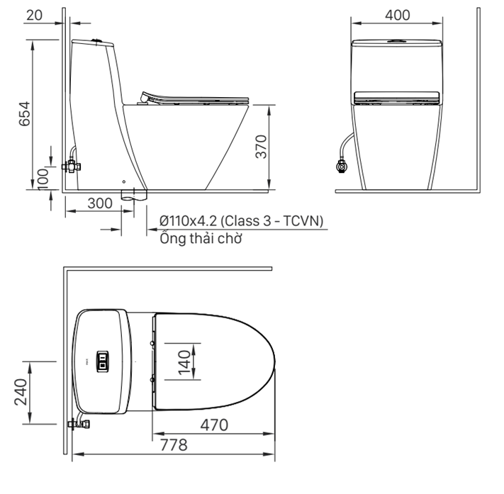Bàn cầu 1 khối xả cảm ứng + nắp rửa cơ-ACT-902+CW-S15YN/BW1