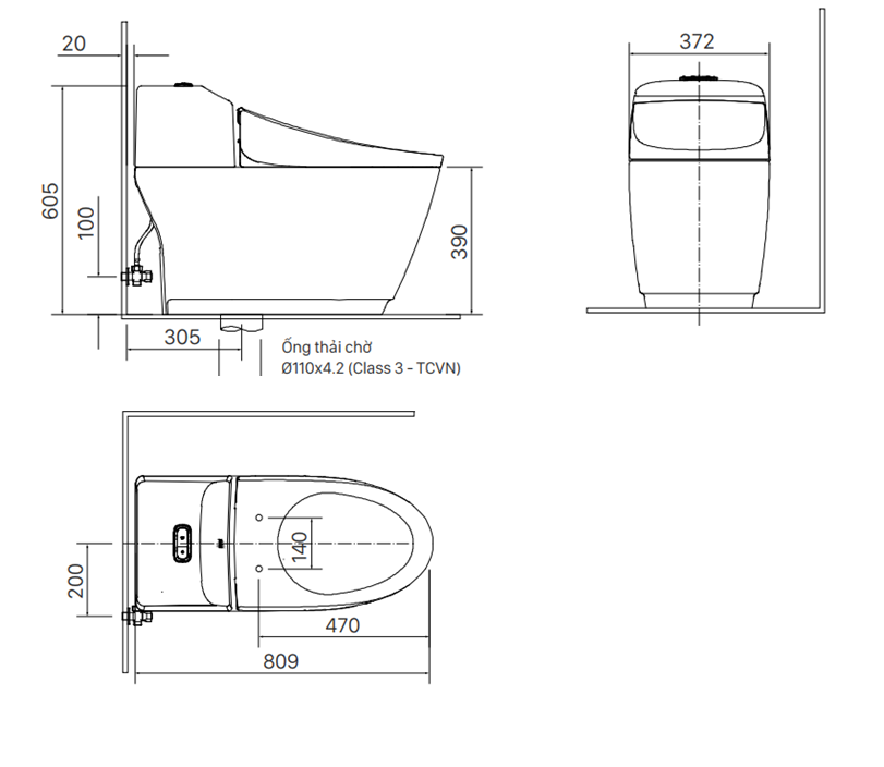 Bàn cầu 1 khối + nắp rửa điện tử-AC-1032+CW-KA22AVN/BW1