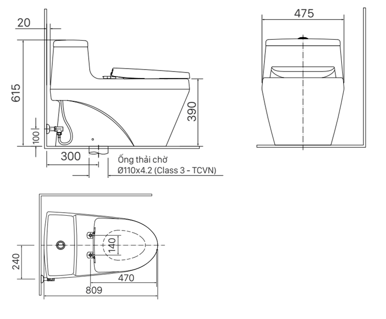 Bàn cầu 1 khối + nắp rửa điện tử-AC-1035+CW-H18VN/BW1
