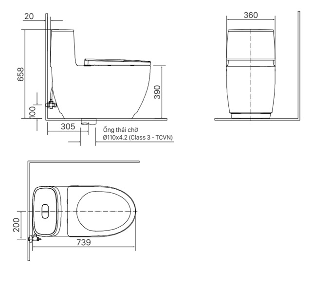 Bàn cầu 1 khối, đã bao gồm nắp đóng êm