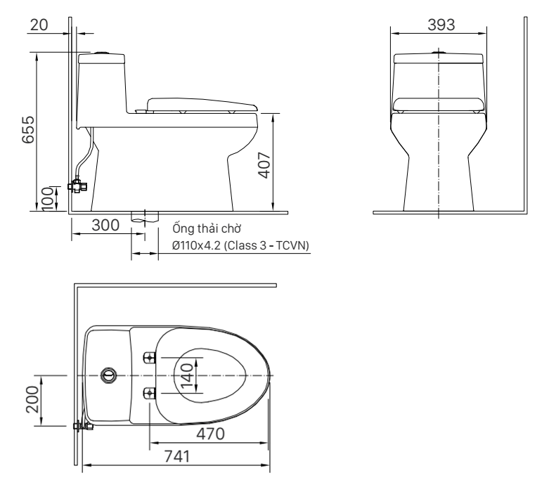 Bàn cầu 1 khối + nắp rửa điện tử-AC-939+CW-H20VN/BW1