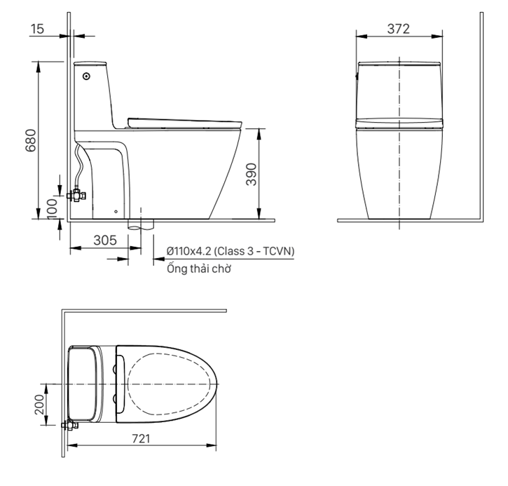 Bồn tắm nhựa không tay vịn, có yếm , Bộ xả nhấn kèm ống thải bồn tắm: TVBF411