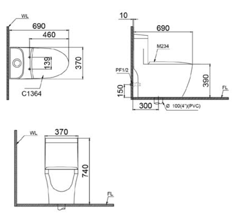 Bàn cầu 1 khối(không nắp) + Nắp rửa cơ TAF060