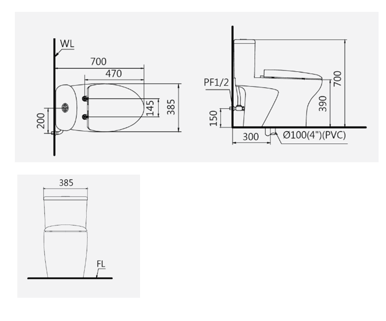 Bàn cầu 1 khối(không nắp) +Nắp rửa điện tử TAF200H