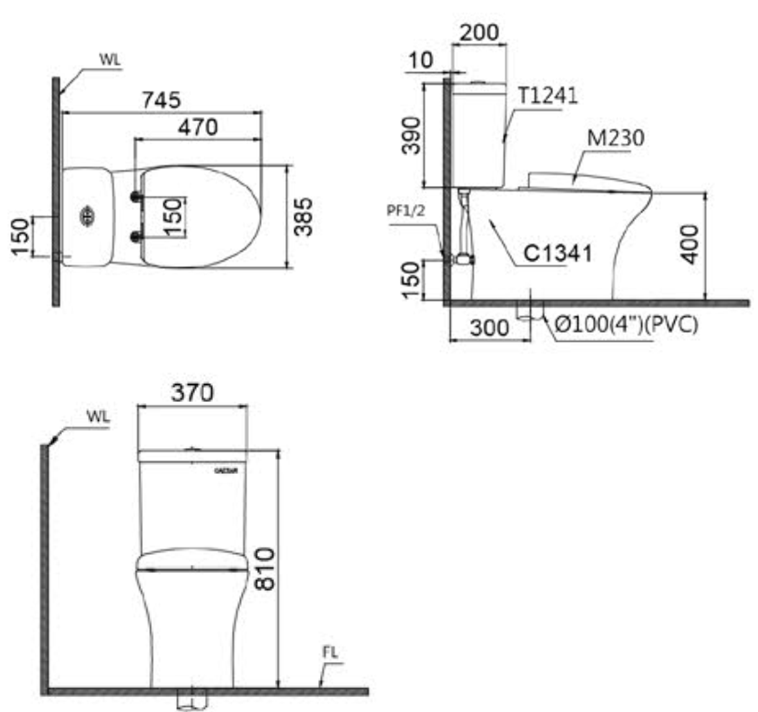 Bàn cầu 2 khối ( không nắp ) + Nắp rửa điện tử TAF400H