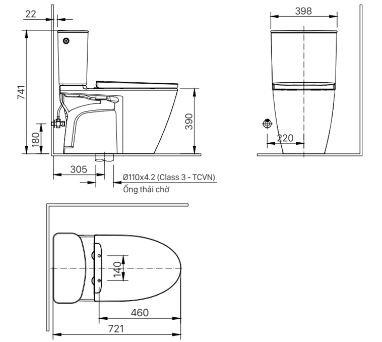 Bàn cầu treo tường + nắp rửa điện tử-AC-23P+CW-KA22AVN/BW1