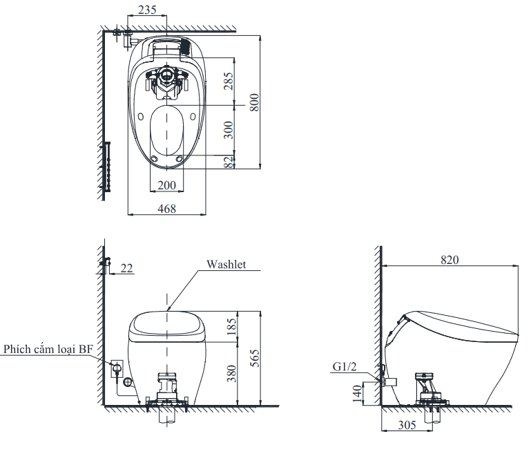Bàn cầu 1 khối Nano Titan, xả nhấn 2 ché độ, nắp êm H808 + VG826 + VG853