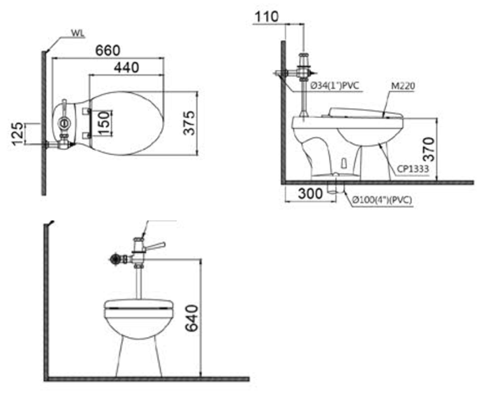 Bệ tiểu nam đặt sàn - đường nước cấp phía trên