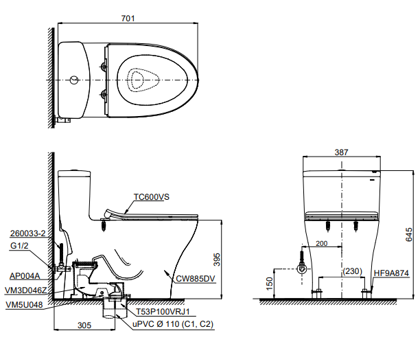 Bàn cầu 1 khối + nắp rửa cơ-AC-919R+CW-S15VN/BW1