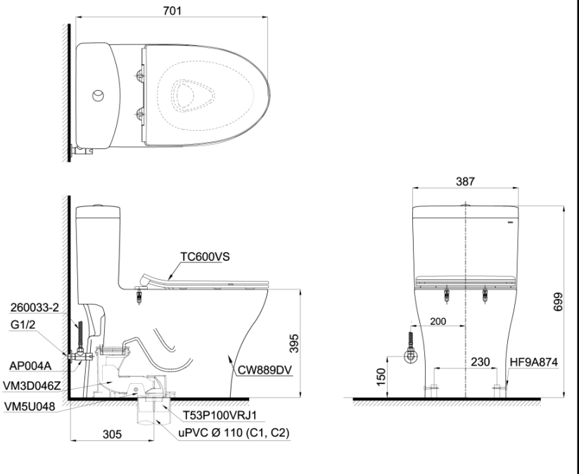 Bàn cầu một khối, nắp đóng êm TC600VS , Men sứ chống dính CeFiONtect