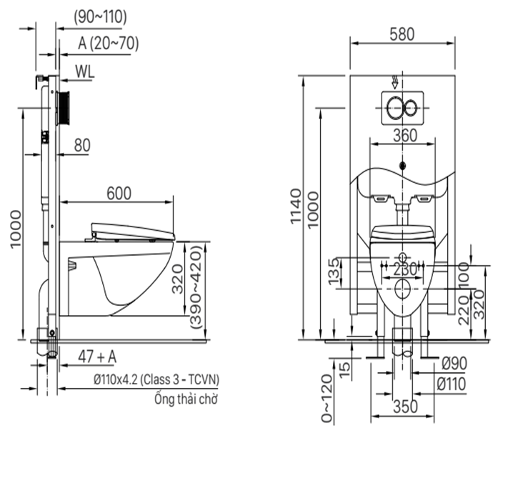 Bàn cầu treo tường + nắp rửa điện tử-AC-23P+CW-KA22AVN/BW1