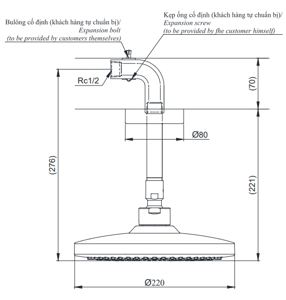 Bát sen gắn tường 2 chế độ massage , Đường kính: 220mm
