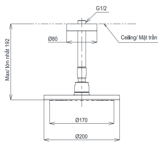 Bát sen gắn trần dòng G dáng tròn 1 chế độ, mặt kim loại , Đường kính: 200mm