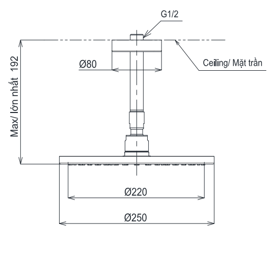 Bát sen gắn trần dòng G dáng tròn 1 chế độ, mặt kim loại , Đường kính: 250mm