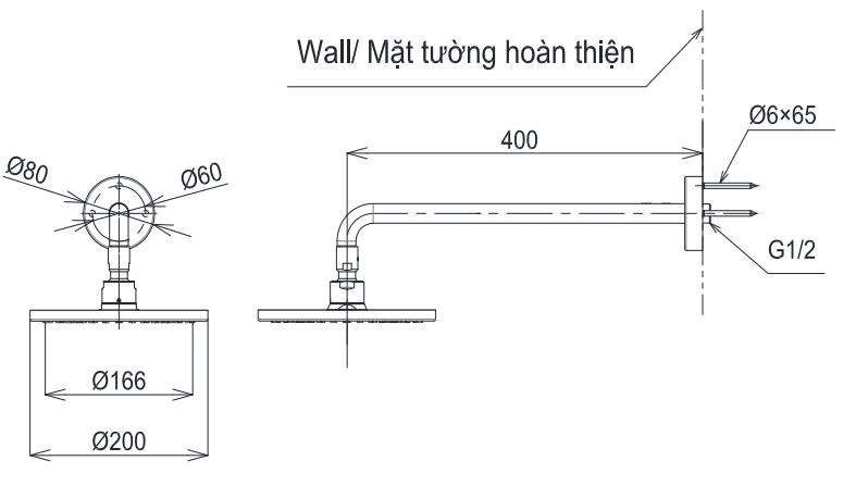 Bát sen gắn tường dòng G dáng tròn 1 chế độ, mặt kim loại , Đường kính: 200mm