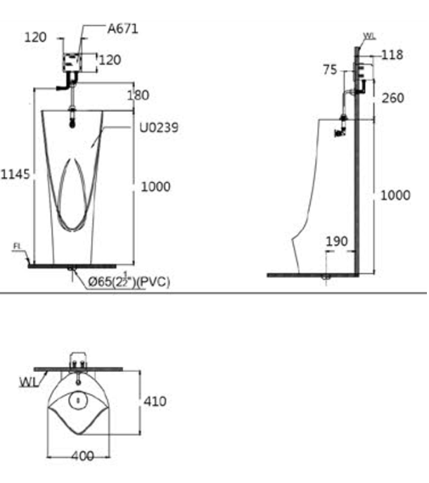 Bệ tiểu nam đặt sàn - đường nước cấp phía trên