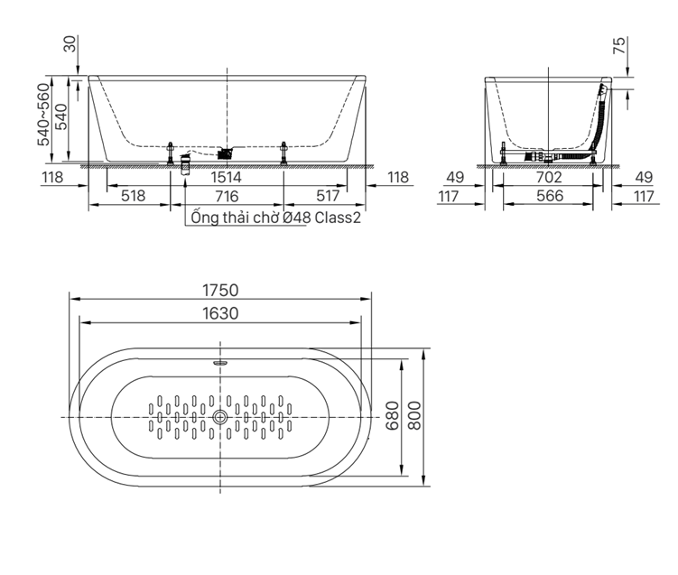 Bồn tắm đặt sàn (Acrylic)-BF-1757V/BWl