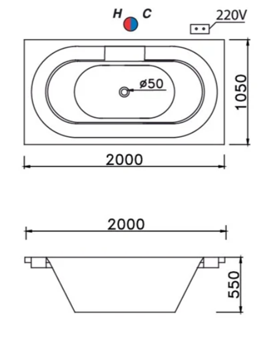 Bồn tắm Massage - loại xây không chân - không yếm
