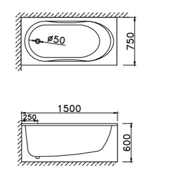 Bồn tắm nằm có chân & yếm - AT0250L(R)