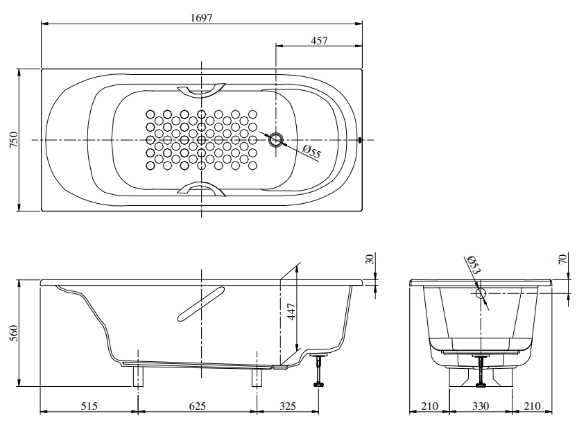Bồn tắm ngọc trai , * Bao gồm tay vịn, bộ xả nhấn (DB505R-3B) kèm ống thoát thải bồn tắm (TVBF412)