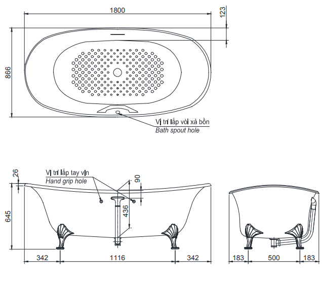 Bồn tắm ngọc trai đặt sàn , * Bao gồm bộ chân cao cấp, bộ xả nhấn mạ vàng