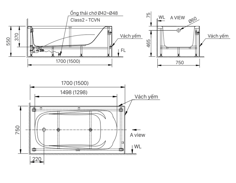 Bồn tắm yếm phải-FBV-1502SR/BWl