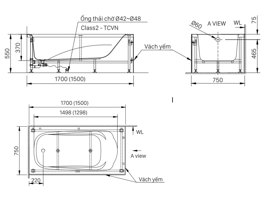 Bồn tắm yếm trái-FBV-1702SL/BW1