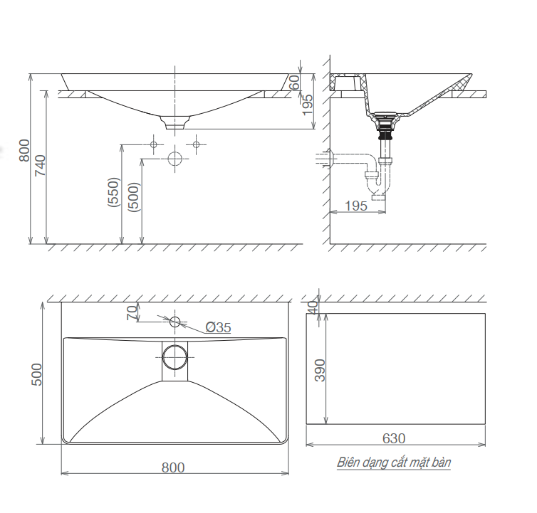 Chậu bàn kèm tủ chậu CB68 + tủ chậu